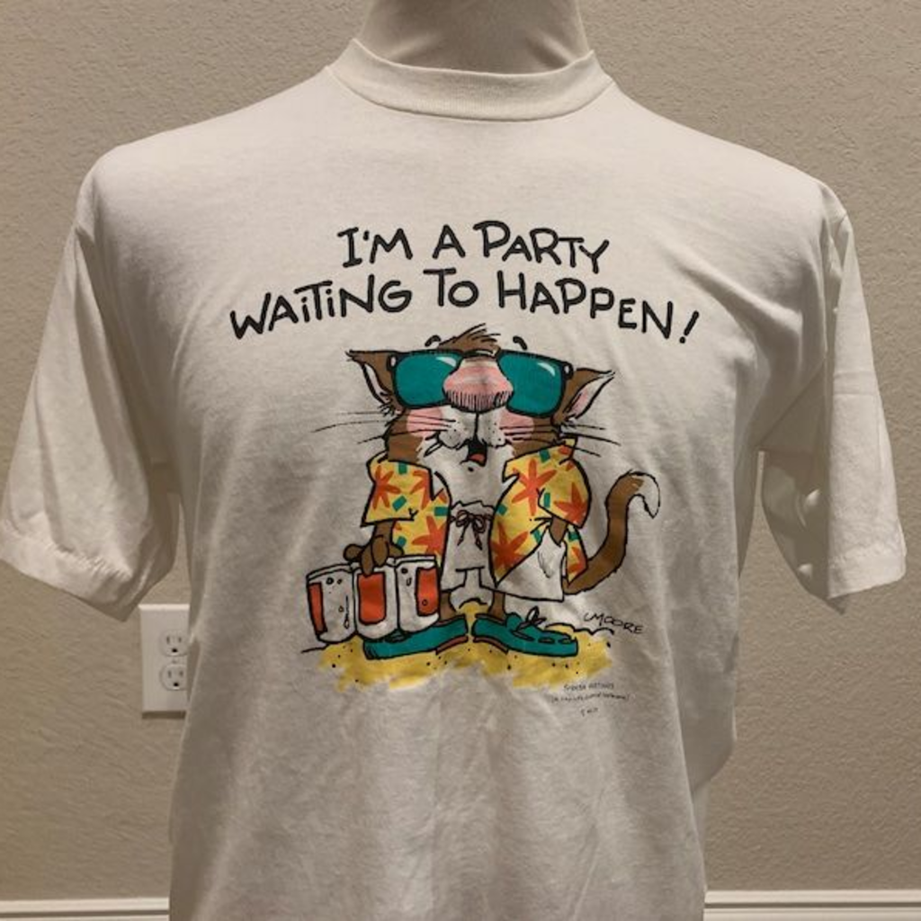 Have a look at the detailed information about Vintage 90's I'm a Party Waiting To Happen Funny Cat Shirt below!