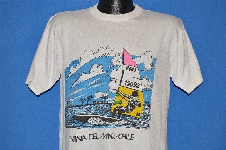Have a look at the detailed information about 90S Vina Del Mar Chile Windsurfing T Shirt Medium below!