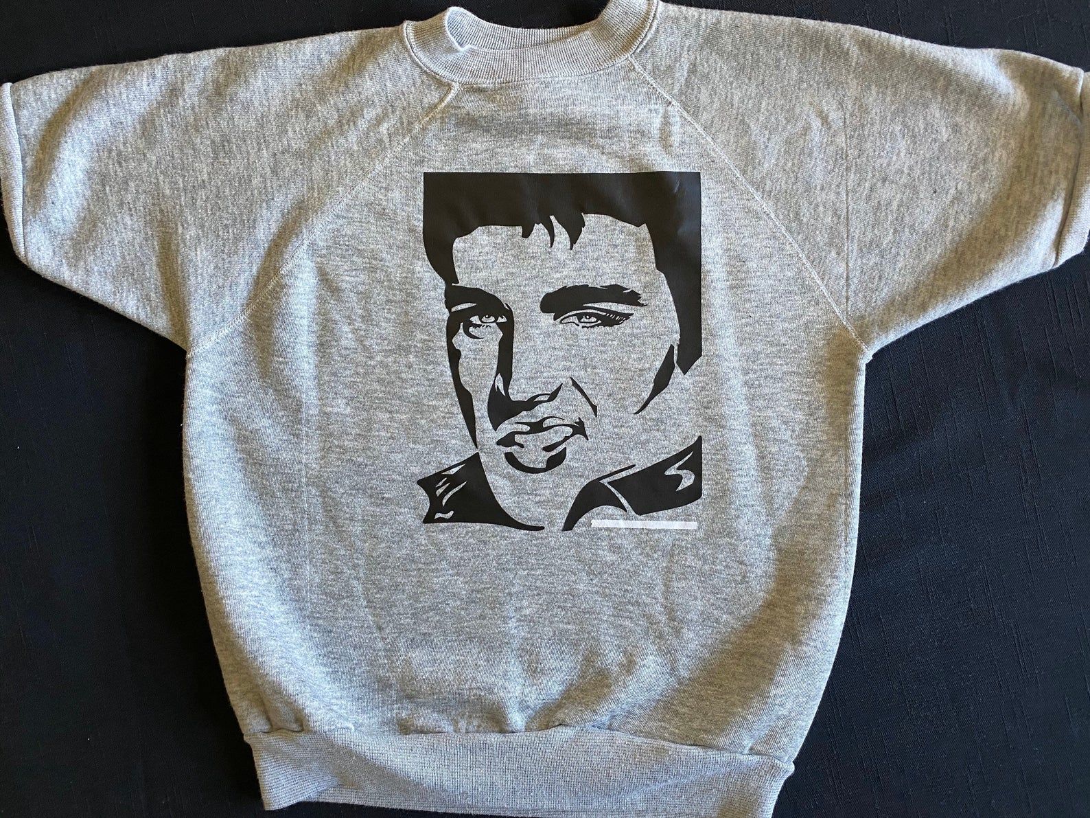 Elvis Presley 70'S Heat Transfer Iron On Bold Black Silhouette On Soft Gray Heather Short Sleeve Raglan Rare Image X