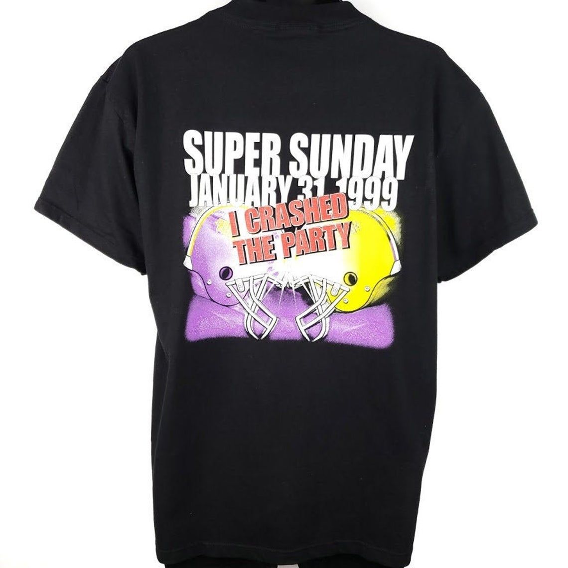 Have a look at the detailed information about Super Bowl XXXIII Vintage 90s 1999 Denver Broncos Atlanta Falcons Super Sunday Tropicana Shirt below!