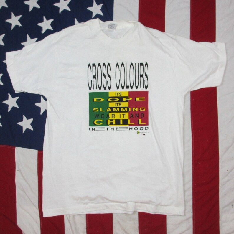 Vintage 1990S Cross Colours In The Hood T Shirt Os Xl Hip Hop Tee Rap Academic Hard Wear Dope Chil Slamming Afro Centric Black White