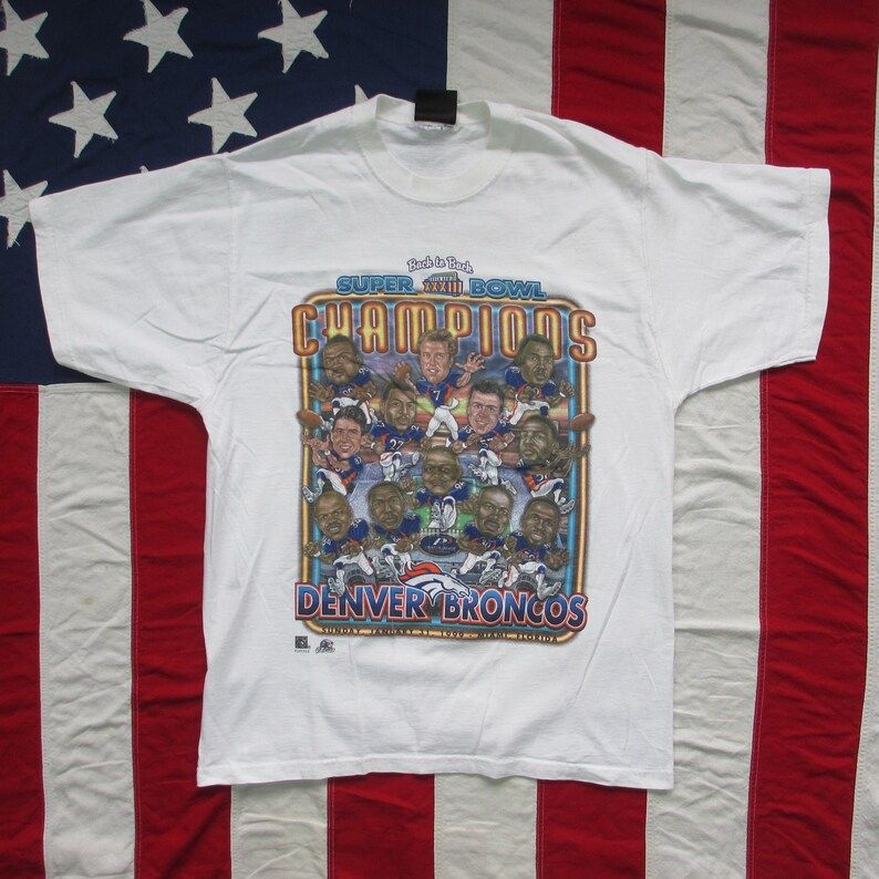 Have a look at the detailed information about Vintage 1990S Denver Broncos Super Bowl Champions Caricature Graphic T Shirt Small Medium Pro Player Nfl John Elway Big Head Face White below!