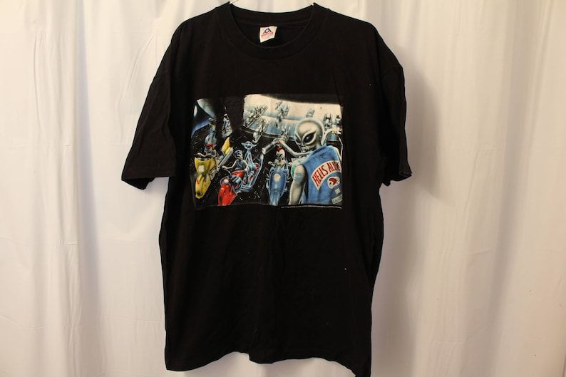 Have a look at the detailed information about Vintage 1996 Hells Aliens Space Cycle Tee below!