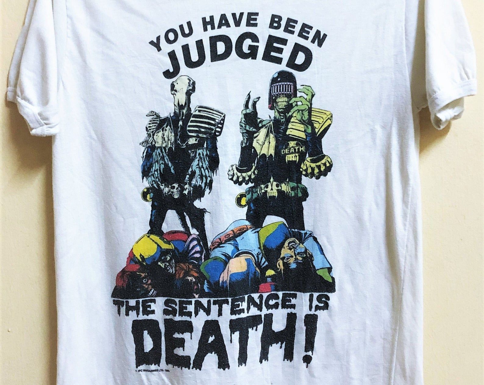 Vintage 80'S 1983 2000 Ad Judge Dredd Ipc Comic Magazine T-Shirt Punk Rock Anthrax
