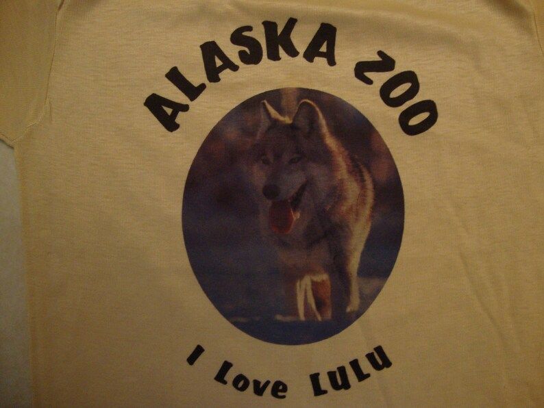 Have a look at the detailed information about Vintage 80S Alaska Zoo I Love Lulu Souvenir Beige Kodel Polyester T Shirt below!