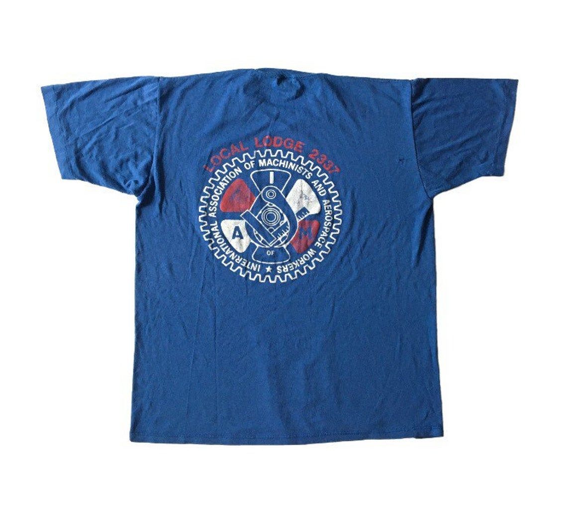 Have a look at the detailed information about Vintage 80s Machinists and Aerospace Workers Jerzees shirt below!