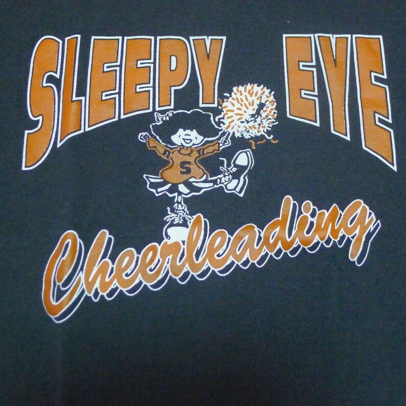 Have a look at the detailed information about Vintage 80S Sleepy Eye Public School Cheerleading Black T Shirt below!