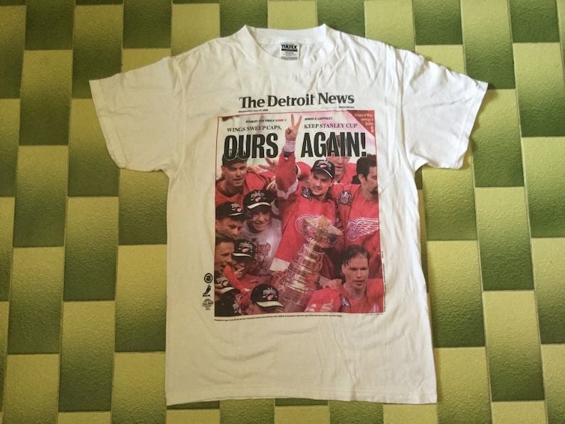 Vintage 90S 1998 Red Wings Stanley Cup Winning The Detroit News Front Page T Shirt Nhl Hockey Tee Shirt