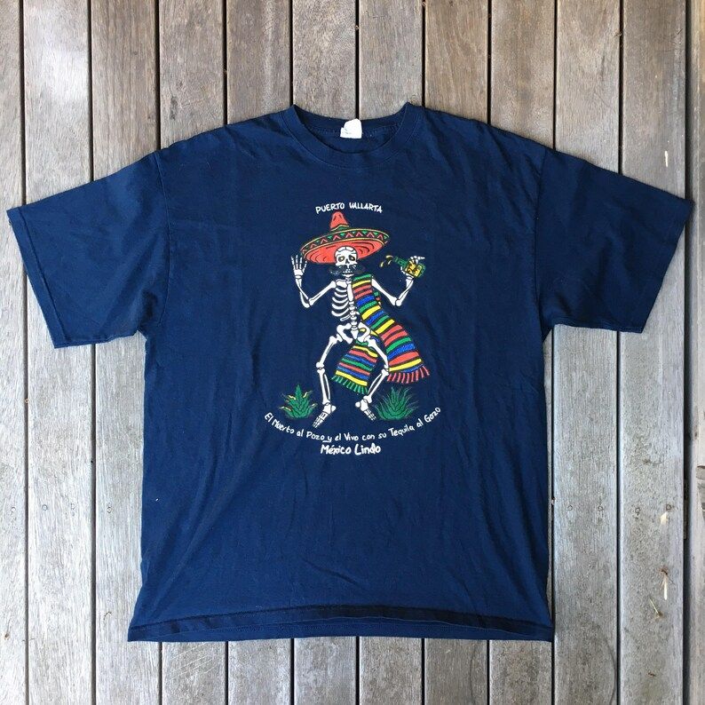 Vintage 90S Puerto Vallarta Unisex Hipster Mexican Dad Souvenir Summer Festival Medium T Shirt Retro Hipster Mexico Souvenir Navy Blue Tee