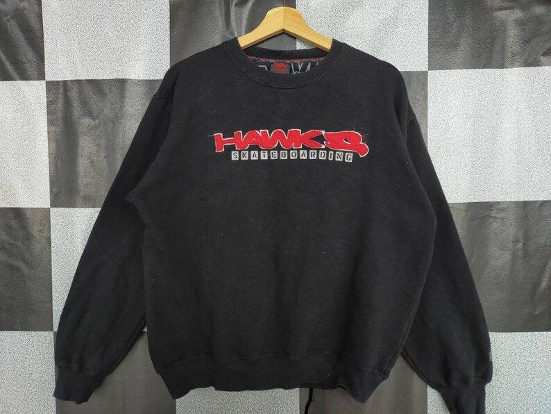 Have a look at the detailed information about Vintage 90S Tony Hawk Skateboarding Embroidery Spellout Crewneck Pull Over Jumper Sweatshirt Black Colour M Size Rare Item below!