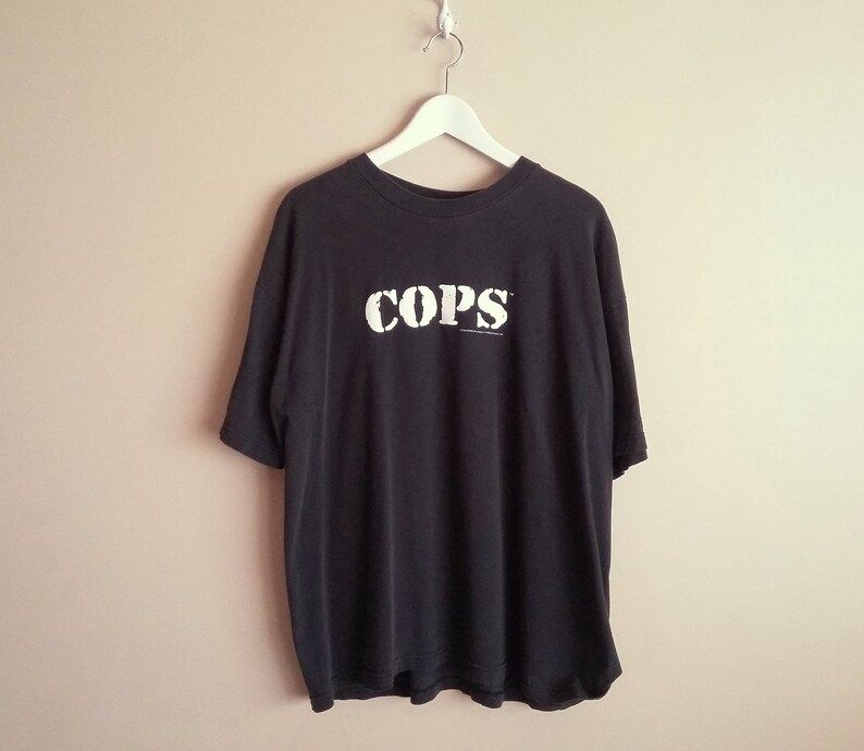 Have a look at the detailed information about Vintage 90S Unisex Cops Tv Show Black T Shirt Aero Activewear 100 Cotton Made In Usa Size Extra Large Faded Television Show below!