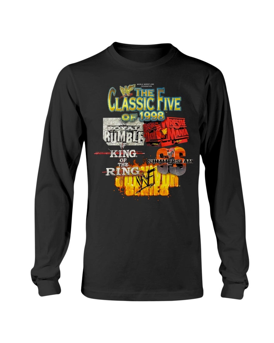 Have a look at the detailed information about Vintage 90S Wwf The Classic Five Of 1998 Royal Rumble King Of The Ring Wrestle Mania Summer Slam Wrestling Long Sleeve T Shirt 211115 below!